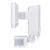 This 2-light integrated LED solar outdoor motion sensor security light provides dual-level lighting: ambient 2700K low-level lighting overnight and 5000K full brightness high level when motion is detected. The light heads and sensor are fully adjustable and automatically deliver 1800 lumens to illuminate your home’s exterior with warm ambient light at dusk, then instantly brighten when motion is detected. The included solar panel is equipped with a 16 foot connecting wire to allow for positioning in maximum sunlight for solar power or optional battery backup power with 3 x 1.5V C-Type Alkaline batteries (not included) keeps your lights powered no matter the weather. Customize your lighting options with 2 modes of operation plus adjustable motion sensor sensitivity. Suitable for wall or eave mounting with a wide 240 degree detection area and up to 50 feet. This Dualux security flood light expands the functionality, safety, and security of your home’s outdoor spaces with bright, reliable light when and where it’s needed.