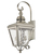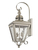This stylish brushed nickel outdoor wall lantern is a great way to update your home's exterior decor. A flat metal curved arm attaches the solid brass decorative housing to the square backplate while clear water glass protects the two bulbs.
