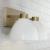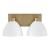 Invite charming style to any powder room with the Ross 2-Light Vanity. The curved White metal shades create a retro aesthetic, while the Aged Brass details give a nod to mid-century style.