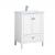 Featuring a “chic and unique” rectangular resin countertop and sink, our “Aqua” vanity will naturally augment and beautify your guest or office bathroom! We’ve designed this vanity with an abundance of high-grade resin, ensuring non-stain, scratch resistant, maintenance-free use. With ample storage space behind 2 “straight-line” doors—accented by brushed steel finish knobs—and within the solid wood drawer (the cabinet frame and tapered legs are also solid wood), this vanity merges form and function magnificently. · Measurements: W24” x D18” x H34” · white resin rectangular countertop · Single faucet hole, ready to install · white resin rectangular sink · 2 soft-closing doors, 1 solid wood drawer with soft-closing undermount slides · Constructed of kiln-dried solid wood and MDF · Faucets shown are not included. Cabinet comes completely assembled—resin countertop easily attached to cabinet. Expertly engineered packing.