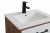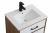 Delve into a world of minimalistic fashion and contemporary styling with this midcentury modern 24" vanity. The clean lines anchors the design, while the oblique tapered cylinder legs add subtle interest. A black handle adorns the top fake drawer hiding the base of the porcelain sink while another one allows you to pull the bottom drawer out, letting you store your bathroom necessities and toiletries. The compact size makes it the perfect vanity for any bathroom or powder room, regardless of size.