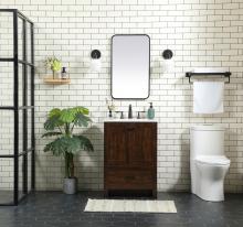 Delve into a world of minimalistic fashion and contemporary styling with this farmhouse 24" vanity. The clean faux lines anchors the weathered design. Black handle adorns the two doors hiding the base of the integrated porcelain sink while the bottom drawer allows you to store your bathroom necessities and toiletries. The compact size makes it the perfect vanity for any bathroom or powder room, regardless of size.