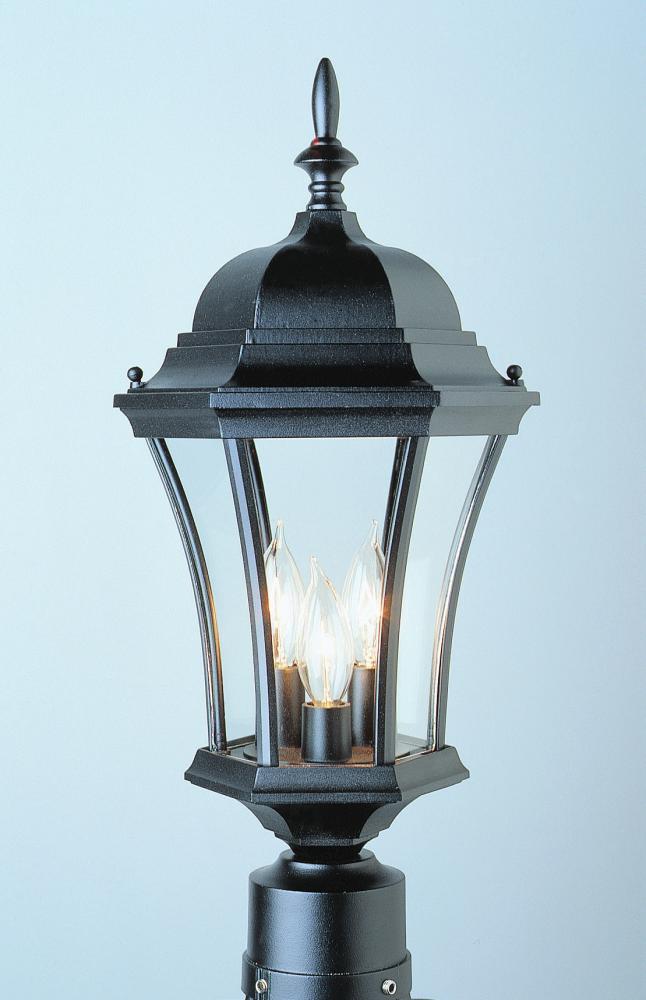 The Burlington 21.25" Postmount Lantern adds charming character to your home’s exterior. The postmount lantern sets a warm and inviting tone for an outdoor living area while providing ample lighting. The slim incurved eye-catching shape is a new look for old fashioned outdoor decor. Three candelabra bulbs brightly shine through the Clear Glass sides. Bulbs are not included. Featuring several finish options, The Burlington Collection will accommodate a variety of outdoor decor styles and will not disappoint.