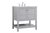 The subtle beauty of the Thalen collection 30" vanity in a gray finish exudes comfortable luxury. Its modern, yet traditional beauty will surely dress up your bathroom or powder room without any fuss. The white stone countertop and porcelain undermount sink shows quiet opulence, and the legs support upright without fail. Brushed Nickel hardware complements the trendy gray finish, with pulls adorning the two cabinet doors, showcasing ample storage space within. Slated shelf allows for additional space to organize your towels. Whether this vanity is in your bathroom or for guests, its presence will surely elevate the aesthetics of your room.