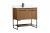Live in comfort with this modern vanity. Dressed in a walnut brown and modern black metal hardware, its sleek style will have your bathroom or powder room elevated in industrial sophistication. The open shelf at the base and two doors reveal ample storage space for your bathroom essentials. Clean lines create its own visual interest, adding trendy looks to your already chic room. Comes with a matching backsplash to complete the look and protects your wall.