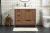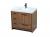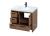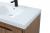 Modern sophistication is defined within the wood finish look and black barpulls of this vanity. Its length makes it the perfect addition to any sized home, and saves space with its storage area hidden behind the double cabinet doors and one bottom drawers. Topped with a highly durable thick resin white counter top and an integrated sink, this modern design will add everlasting class to your bathroom and powder room.