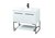 Live in modern comfort with this 36" white finish vanity. Dressed in a white and sleek black metal hardware, its contemporary style will have your bathroom or powder room elevated in industrial sophistication. The open shelf at the base and two doors reveal ample storage space for your bathroom essentials and miscellany. Clean lines create its own visual interest, adding trendy looks to your already chic room.
