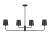 Heighten the drama in your home with this chic 4-light linear chandelier. The whole fixture, including the metal shades, is finished in Matte Black for a glow that is boldly concentrated like a spotlight. Plus, you can adjust the two tiers of arms to really customize the look. This linear chandelier is 42" in length, 17.25" in width and has an adjustable height ranging from 10" to 64". It comes with four 12" downrods and one 6" downrod. Uses 4 standard size bulbs of up to 60 watts per bulb. Bulbs not included.