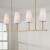 The Averitt Linear Chandelier delivers elegant transitional style with grand scale. The unique rounded, recessed bottom detailing adds to the high design of the elongated Soft White glass tapered shades, while the Aged Brass finish brings subtle shine and sophistication to the straightforward silhouette.