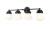 Indulgent village-inspired charm mixes nautical with industrial, forming a themed look that lifts the ambiance in any bath space. This four-light vanity light from the Vaughn collection embellishes a mid-size bathroom with a contrasting blend of matte black finish steel and matte opal glass shades in a schoolhouse silhouette.