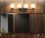 Cool black offers a chic touch of contrast and depth to this transitional four-light vanity bath fixture from the Colette collection. Its a clean, refined design with graceful curves on its wall plate and a straight bar that hosts four rounded shades. Each shade features a swirled pattern in feathered opaque white, ensuring inviting, flattering illumination for all your daily needs.