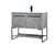Live in modern comfort with this 40" concrete grey finish vanity. Dressed in a concrete grey and sleek black metal hardware, its contemporary style will have your bathroom or powder room elevated in industrial sophistication. The open shelf at the base and two doors reveal ample storage space for your bathroom essentials and miscellany. Clean lines create its own visual interest, adding trendy looks to your already chic room.