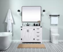 Reminiscent of barn doors, the two door cabinet and four drawers adds both stylistic charm and function with its plethora of storage options for all your bathroom essentials. Whether for your bathroom or the guests', everyone will marvel at its classic look for traditional and farmhouse aesthetics. A slab of engineered marble rounds out the piece up top, as well as the porcelain under mount sink and predrilled faucet holes. This vanity arrives fully assembled.