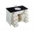A sleekly styled 4 doors and 8 drawers, granite-topped bathroom vanity like this can only bring a smile of appreciation for its simple beauty and clean lines. With an authentic black granite counter top, oval white porcelain sink, hand painted antique white cabinet, 2 soft-close center doors with a shelf inside, 4 side drawers on each side, brushed steel hardware and carved bun feet, this elegant, transitional vanity balances form and function. Measurements: W48”xD21”xH35”
