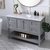Create a refined and relaxing bath space with this contemporary design vanity, presenting its simplicity and clean straight lines in a minimalist appeal. This 48" freestanding vanity, crafted of solid poplar wood in a soft-grey finish, provides ample storage within its double center door and 4 side drawers, all equipted with soft closing mechanism and accentuated with gleaming chrome hardware. Rounding out the design is a luxurious Itallian Carrara white marble counter top and a white porcelain under-mount oval sink.