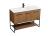 Live in comfort with this modern vanity. Dressed in a walnut brown and modern black metal hardware, its sleek style will have your bathroom or powder room elevated in industrial sophistication. The open shelf at the base and two doors reveal ample storage space for your bathroom essentials. Clean lines create its own visual interest, adding trendy looks to your already chic room.