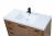 Modern sophistication is defined within the wood finish look and black barpulls of this vanity. Its length makes it the perfect addition to any sized home, and saves space with its storage area hidden behind the double cabinet doors and one bottom drawers. Topped with a highly durable thick resin white counter top and an integrated sink, this modern design will add everlasting class to your bathroom and powder room.