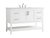 The nonchalant attitude of this 42" traditional white finish vanity will have you wanting more. The slender brushed nickel handle bars open the center double cabinet and two side cabinet doors to reveal ample storage space to put away and store bathroom essentials, and the open space below allows for you to place clean towels on the rack. Topped with a Calacatta engineered marble countertop, you and your guests will enjoy this easy going vanity.