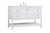 The subtle beauty of the Theo collection 48" vanity in a white finish exudes comfortable luxury. Its modern, yet traditional beauty will surely dress up your bathroom or powder room without any fuss. The white stone countertop and porcelain undermount sink shows quiet opulence, and the legs support upright without fail. Brushed Nickel hardware complements the trendy white finish, with pulls adorning the two cabinet doors and four drawers, showcasing ample storage space within. Slated shelf allows for additional space to organize your towels. Whether this vanity is in your bathroom or for guests, its presence will surely elevate the aesthetics of your room.