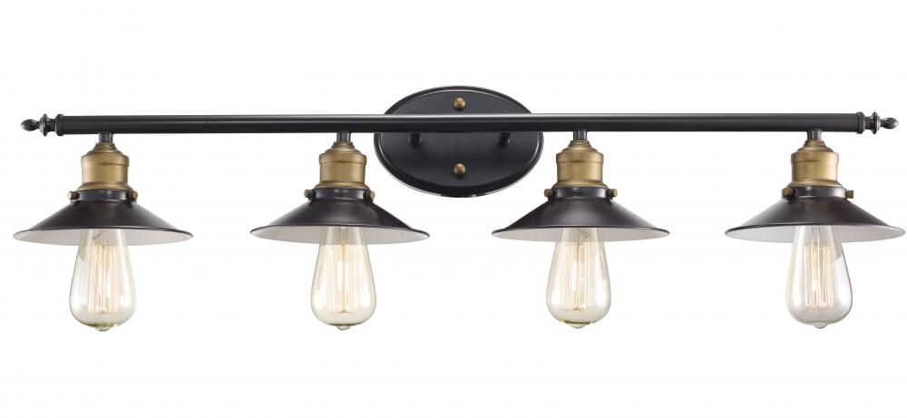The Griswald Collection is a decorative way to bring light into your bath or powder room. The Industrial tone allows the vanity bar to stand out as both functional and decorative as it lights up the space. Expertly pairing a Rubbed Oil Bronze finish with vintage barn style shades, this fixture is both functional and picturesque. This Griswald Collection contains no glass, and offers timeless style. Vintage Edison style bulbs recommended for aesthetics. Bulbs are not included.