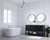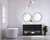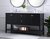 Create a refined and relaxing bath space with this contemporary design vanity, presenting its simplicity and clean straight lines in a minimalist appeal. This 48" freestanding vanity, crafted of solid poplar wood in black finish, provides ample storage within its double center drawers and 4 side doors, all equipped with soft closing mechanism and accentuated with gleaming chrome hardware. Rounding out the design is a luxurious Itallian Carrara white marble countertop and double white porcelain under-mount oval sink.