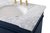 The Wesley Collection vanity cabinet will bring a settle pop of color into your bathroom. The navy blue is a cool color which creates a calming atmosphere in the room. The gold knobs bring a vibrant touch to balance the vanity. With the detailed engravings, the cabinet catches eyes with its beautiful lining work. Open the cabinet doors to store what you desire and make use of the spacious area. To top it off, the Carrara white marble adds a luxury and modern finish to the countertop.