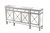 Reflect your glamourous style in your home with this stunningSilver finish cabinet. Gleaming glass panels add ritzy charm while also opening up the space, and brushed steel finish knobs reveal storage spaces within the 4 doors and 3 drawers--plenty for any sized home! Whether this shimmering cabinet is placed in your foyer, living room, or dining room, its beauty won't be amiss.