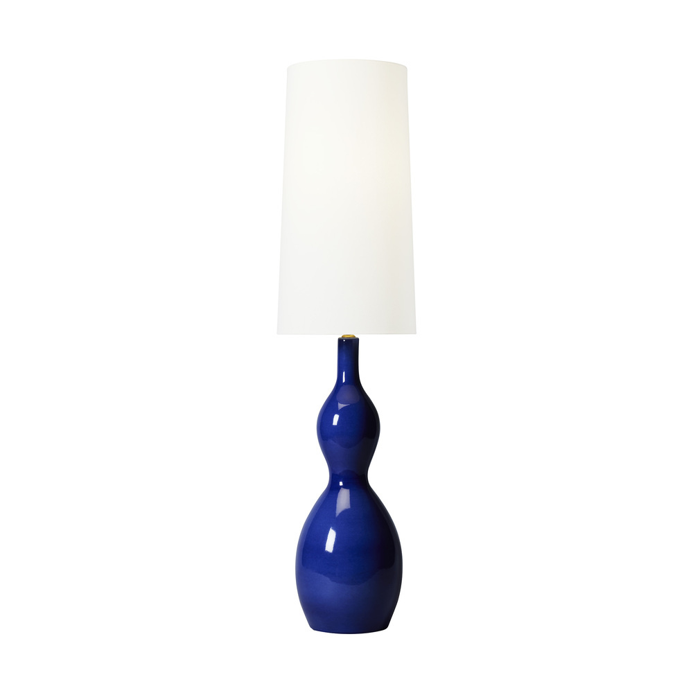 The Antonina one light table lamp by AERIN is inspired by vintage pottery, this gourd-shaped table lamp is beautifully balanced, with soft curves. A semi-transparent glaze gives the base a luminous quality, while the linen shade provides a softened glow. A graceful addition to end tables, a bookshelf, or a hallway console.