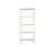 Made of mahogany and oak in a mix of off white and fog finishes, the Aster White Etagere was inspired by an antique from the Winterthur Museum. The gray and white etagere has three shelves and is fitted with brass ferrules that are warm accents in a brass finish.