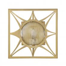 Let your sense of style shine through with the beautiful Balfour 1-light sconce from Savoy House! Its cube-shaped structure wears a Warm Brass finish and is decorated with an eye-catching starburst pattern that holds a circular pane of clear water glass. Balfour is 12" in height, 12" in width and extends 4.5" from the wall. It uses one candelabra size bulb of up to 60 watts. Bulb not included. This sconce is damp area rated.
