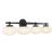 Add a hint of midcentury modern style to your bath with the Savoy House Barrow 4-light bath light. Oval-shaped shades of swirling, stunning strie glass hang down from stylized arms that are, like the round backplate, finished in Black. Barrow is 8" in height, 33.75" in width and extends 8" from the wall. It uses four G9 bulbs of up to 60 watts per bulb. Bulbs not included. Install as shown. This bath bar is damp area rated.