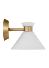 Inspired by playful mid-century modern design, the Drew & Jonathan Belcarra Small Sconce is accentuated by a flared glass shade with ribbed metal details and etched white glass that bestows an almost whimsical touch to the clean design. Available in three finishes, Brushed Steel, Midnight Black, and Satin Brass, the Belcarra looks great on its own or installed above a bathroom vanity. This fixture may be mounted in the up or down position, and is cETL listed for damp locations, making it the perfect lighting solution for any space.