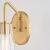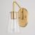 The Beverly collection provides a modern take on classic elegance. Uniquely curved arms in a muted brass finish support clear tapered glass strongly anchored in place. Round matte black discs hold the glass creating a gentle, inviting aesthetic. This wall sconce is ideal for bathrooms, bedrooms, hallways, stairways, and foyers. Add this versatile 1 light vanity to any living space for the ultimate addition of transitional style.