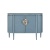 The impressively sized silver flower pull on the Briallen Blue Demi-Lune Cabinet is a stunning ornamentation. A bright accent on the lacquered blue linen surface, the brass floral motif in a polished nickel finish brings the blue cabinet a sophisticated feel and illustrates the skill of our artisans who hand-cast the handle in brass. The four doors on the cabinet open to reveal two fixed shelves and one adjustable shelf.