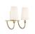Bring the understated, classic beauty of the Savoy House Cameron 2-light bath bar into your home to create a thoughtful accent in any bathroom. This vanity light features slender, dramatically-curving arms topped with tall, tapered white fabric shades, ensuring a flattering glow. The faceted backplate adds another dimension of style, too. Finished in warm brass. This fixture is 15" wide and 12" tall. It extends 8" from the wall. Uses 2 candelabra size bulbs of up to 40 watts each (not included).