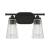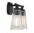 Textured, eye-catching shades of clear ribbed glass take center stage in the Chantilly 2-light bathroom vanity light from Savoy House. Finished in matte black. Chantilly is 10" in height, 14" in width and extends 7" from the wall. Uses two standard size bulbs of up to 60 watts per bulb. Damp area rated.