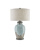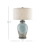 The pale blue glaze on the Chatswood Table Lamp flows over the gray surface of unglazed terracotta to bring it a handmade look. Wood accents in a Hiroshi Gray finish and the crackle finish on the ginger-jar shape brings the terracotta lamp, which is topped with an oatmeal linen shade, added texture.
