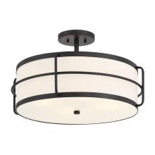 The Savoy House Chauncey 4-light semi-flush mount proves that utilitarian style can be glamorous, too! It showcases a white fabric shade that is accentuated by sleek, chic cage detailing finished in bold Matte Black. Chauncey is 12.25" in height and 22" in width, making it ideal for illuminating larger spaces. It uses four standard size bulbs of up to 60 watts per bulb. Bulbs not included.