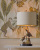 When Marjorie Skouras designed the Codorniz Brass Table Lamp, she was inspired by the Mexican quail that roam the meadows and woods of the Yucatan Peninsula that she calls home. The pair of quail and the rocky ledge on which they are perched are fashioned from cast aluminum in an antique brass finish. The black marble base is honed rather than polished and the natural linen shade with gold foil lining has glimmering gold trim on its top and bottom edges. A whimsical design detail is the finial that is shaped like a quail's head-feather.