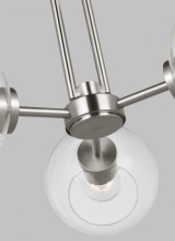 The Codyn three light semi flush fixture in brushed nickel silver is a contemporary take on a classic mid-century design. Clear glass shades with open-ended spheres accent the elongated keyhole strap detail, for a clean look. This minimalist collection relies on subtle details to create visual interest