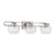 The Codyn three light vanity fixture in brushed nickel silver is a contemporary take on a classic mid-century design. Clear glass shades with open-ended spheres accent the elongated keyhole strap detail, for a clean look. This minimalist collection relies on subtle details to create visual interest