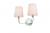 A modern twist on a traditional design, this vanity light is perfect for sprucing up your bathroom. Rated for use in damp locations, this iron fixture features a round backplate, curved arms, and fabric shade accents. Completely versatile, you can place this wall light as an uplight or downlight. Rated for use in damp locations, this will work perfectly over a vanity in your bathroom.