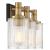 Add a big dose of shimmer with the Concord 3-light bath vanity light from Savoy House. Its ribbed glass shades are paired with ribbed detailing on the arms, boosting the inviting texture. The Matte Black and Warm Brass finish helps every element shine. Concord is 10.5" in height, 22" in width and extends 6.5" from the wall. Uses three standard size bulbs of up to 60 watts per bulb. Bulbs not included. Damp area rated. Must be installed as shown.