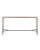 The Crema Console Table combines industrial elegance with artisanal craftsmanship. Its metal frame, finished in a warm bronze, has a hand-forged appearance that adds depth to its streamlined silhouette. Supporting a luxurious crema marble top, the frame folds down and away at the corners, creating a striking forked design that echoes the refined detail found at the ends of the stretcher where it meets the legs. This is a sizeable table at 60 inches long.