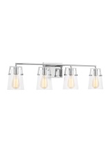 Add a bright burst of light where you need it most with the stylish Drew & Jonathan Crofton Four Light Wall / Bath Sconce, featuring a sleek rectangular metal backplate and clear glass shades. Made to coordinate across a broader range of bath hardware and design styles, the Crofton is available in four popular finishes, Brushed Steel, Chrome, Midnight Black, and Satin Brass. This light looks great on its own or installed above a bathroom vanity, and the glass shades make it ideal for filament bulbs. This fixture may be mounted in the up or down position, and is cETL listed for damp locations, making it the perfect lighting solution for any space.