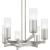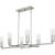 The Cruz linear chandelier introduces transitional style to any kitchen island, dining table, or bar area. Its glass shades feature a distinctive design with clear bottoms and etched tops, creating a unique and captivating light effect. Available in brushe