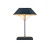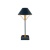 The Daphne Table Lamp looks as if it is made of one material in two distinctive finishes but the base is made of wood while the other elements on the navy-blue table lamp are made of iron and brass. The shape of the oval shade with its painted gold trim is a design detail, as is the gold finish on the interior of the shade that will warm the light bouncing off it.