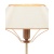 The Daphne Table Lamp looks as if it is made of one material in three distinctive finishes but the base is made of wood while the other elements on the ivory table lamp are made of wrought iron and brass in antique brass and gold finishes. The shape of the oval shade with its painted trim is a design detail worth noting.