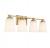 Add a relaxing spa feeling to any bathroom with the Savoy House Darby 4-light bath vanity light! White glass shades offer up a soft yet flattering glow while a matching pane of white glass creates a serene floating effect. Finished in warm brass. Darby is 8" in height, 34" in width and extends 7" from the wall. Uses four standard size bulbs of up to 60 watts per bulb (bulbs not included).