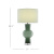 The Duende Green Table Lamp is made of glass with an artful light and dark green surface. The clear optic crystal base anchors the composition that is topped with a green lily shantung shade.